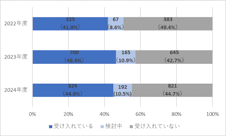 調査対象となっている職場の総数のうち、半数以上が外国人介護人材を受け入れている、もしくは受け入れを検討している状態となっています。今後も、ますます日本で働く外国人介護人材の総数は増えていくと考えられます。