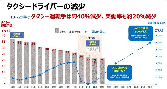 タクシー業界は、現役ドライバーの高齢化や若年層の採用難など構造的な問題があります。実際に、2010年から2021年までの12年間で、タクシードライバーの数は約40%にあたる14万9000人も減少しました。
